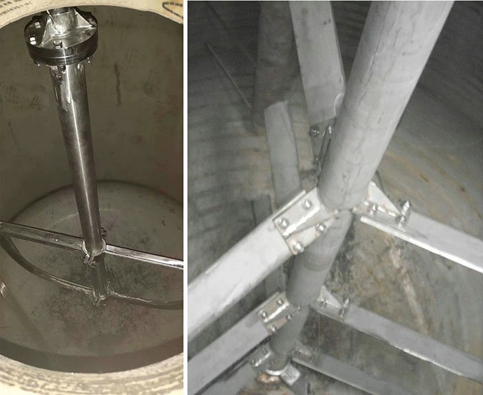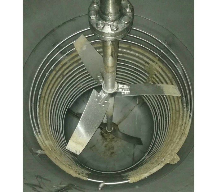 常規(guī)的攪拌形式有錨式、槳式、渦輪式、推進(jìn)式、框式等,攪拌裝置在高徑比較大時(shí),可用多層攪拌槳,特殊產(chǎn)品甚至?xí)褂幂^為復(fù)雜的MIG式攪拌。